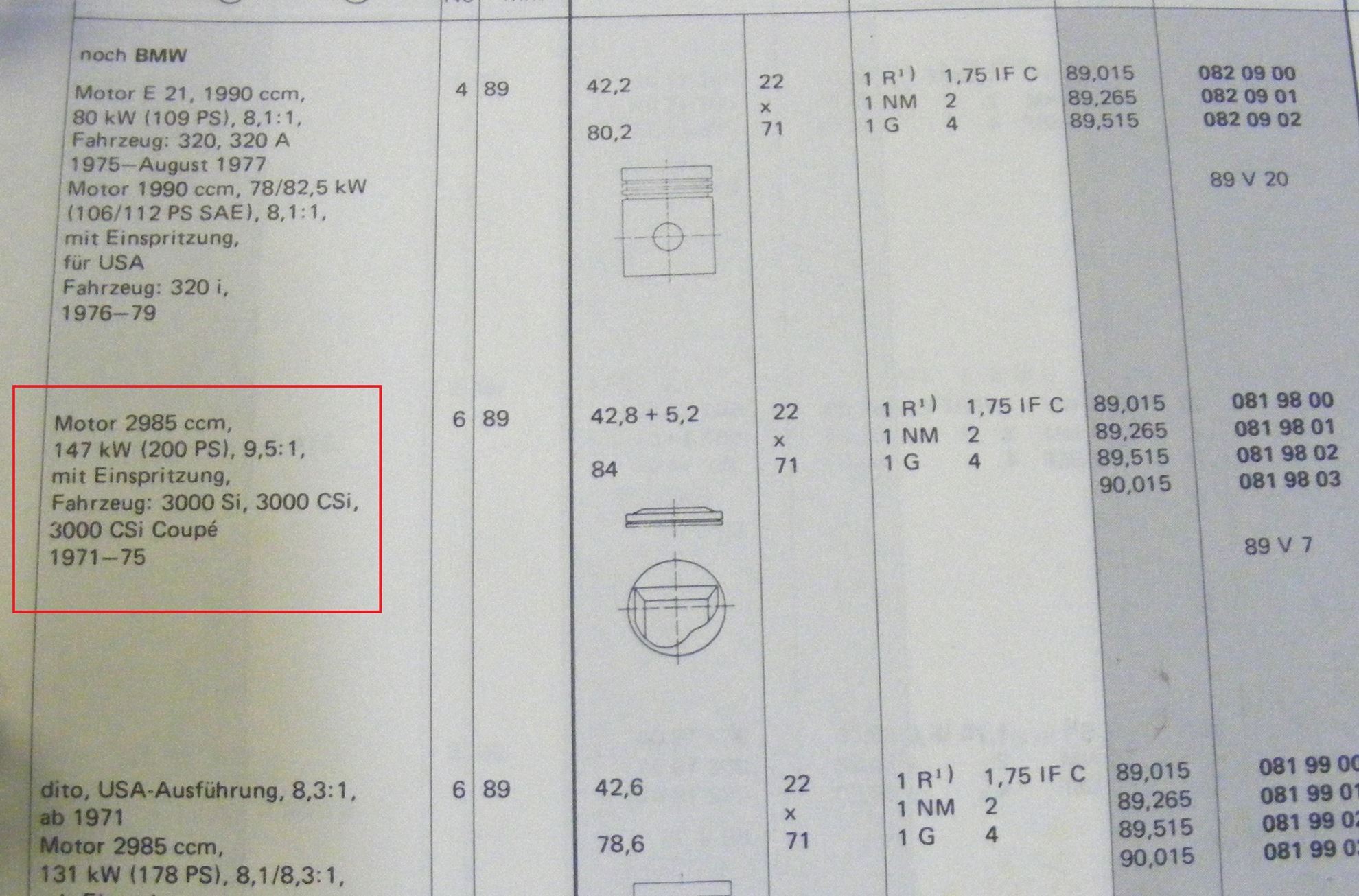 Piston, BMW 3.0si, 11251261970 sold